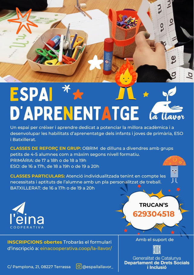 L’Espai està obert de dilluns a divendres de 16h a 20h, amb grups petits de màxim 4 a 5 alumnes per grup i 1 hora de classe per grup.